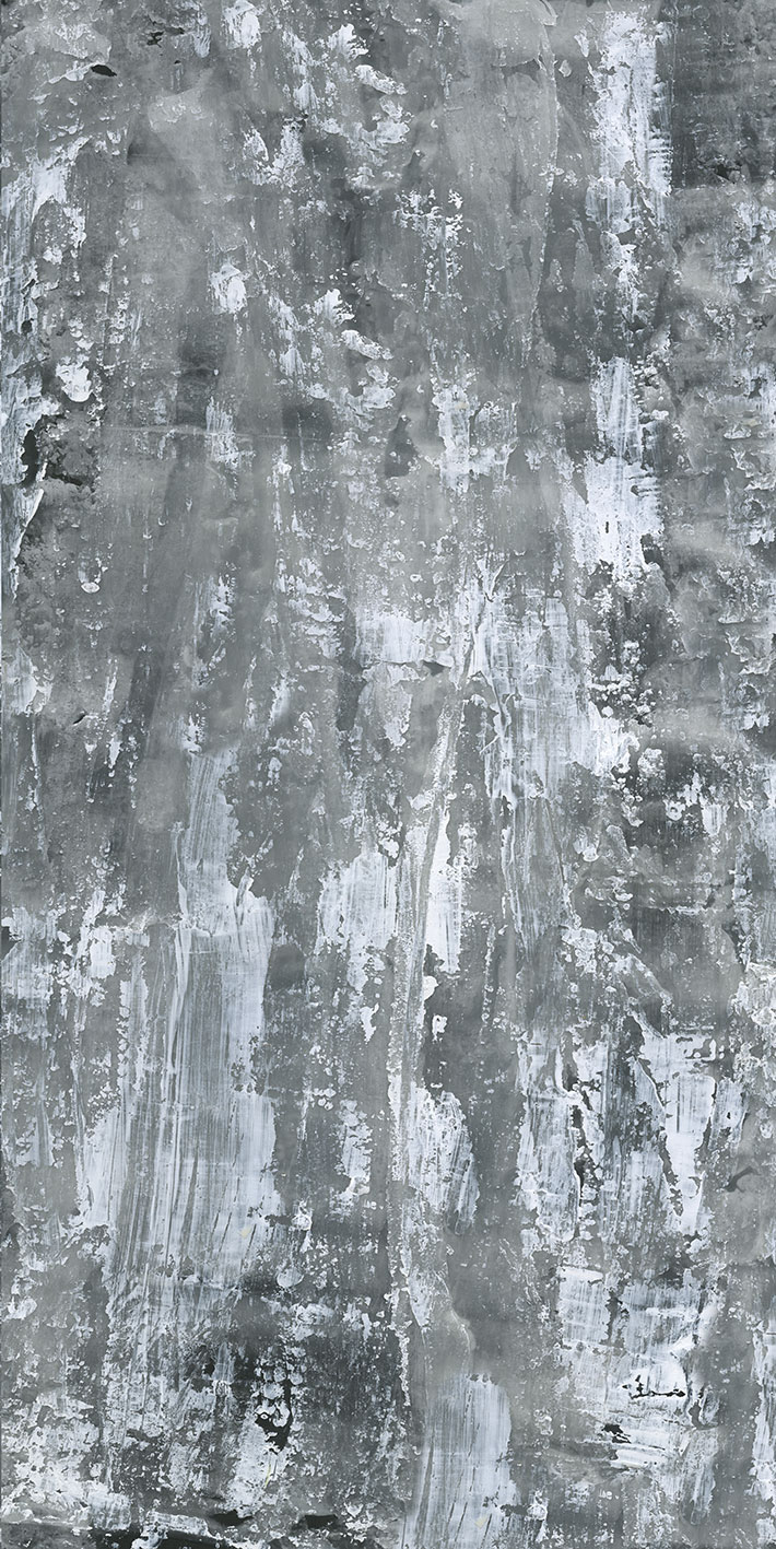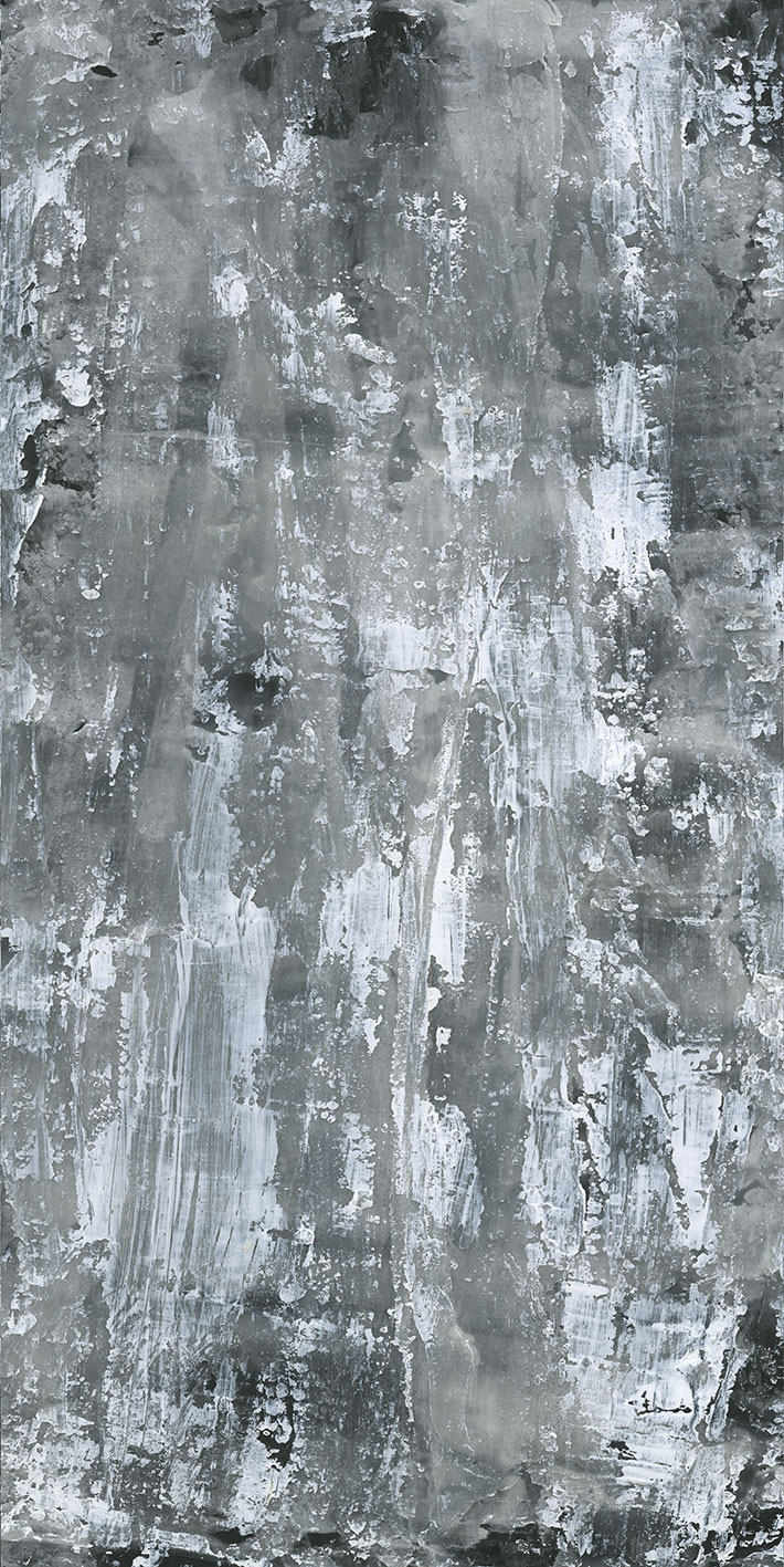 A gritty, textured photograph featuring a worn, weathered wall with a mix of grey, white, and black tones, evoking a sense of age and decay.